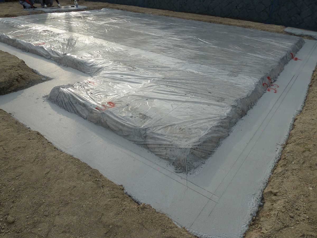 基礎工事中のコンクリートに雨などの水分は良いか悪いか 家の外側 2013年06月07日 先日ついに基礎工事が始まった。いやっほぅ(〃▽〃)家を買ったという実感がわいてくる(笑)仕事帰りに現場を見に行くとコンクリートを流し込み終わって硬化待ちの状態だった。気になったのが天気。硬化する前に雨が降って水と混ざったら良くないのでは・・・(*´・ω・`)と、素人考えで思った。調べてみるとコンクリート打設中に雨が降ってコンクリート中の水分量が変化するのは悪影響を及ぼすみたい。強度が低くなってしまう。・・・やっぱりね~(*´・ω・`)だが!しかし!ある程度硬化してしまえば雨が降っても問題無し。というよりもむしろ好都合なのだ(`・ω・´)なんでも、急速に硬化していくとひび割れなどが入ったりするらしい。特に夏場は気温が高く、すぐに乾くからひび割れの可能性が高くなる。それを防止するためにわざわざ水をまいたりするくらい。だからこの暑い夏の時期、硬化が始まって雨が降るのは良いことなのだ!(`・ω・´)安心した~( ̄▽ ̄)