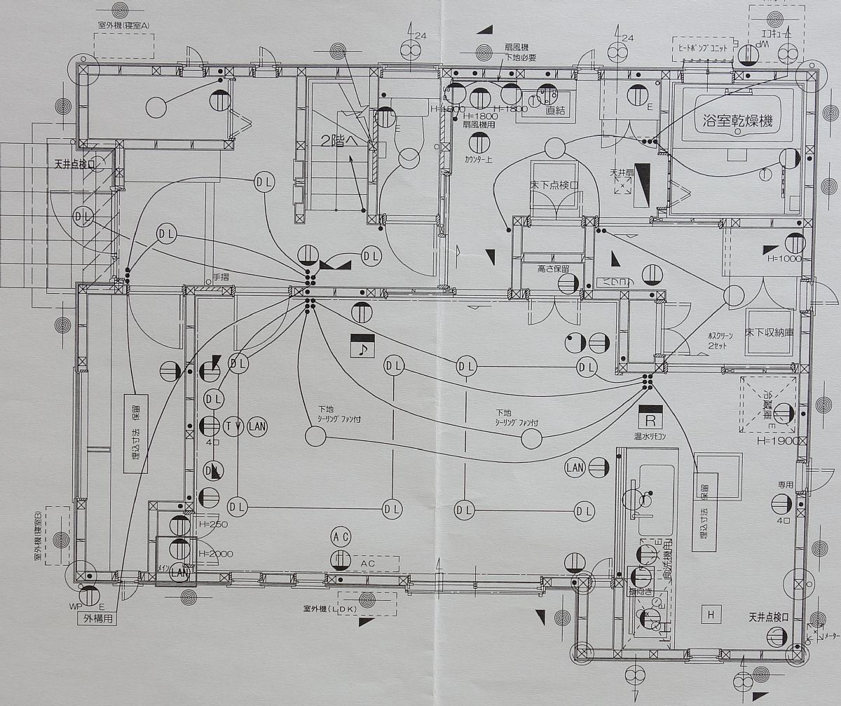 カーテン、照明は自分で調達してコストダウン 家の内側 2013年07月04日 予算は2500万。それにはカーテン、照明は含んでいない。ハウスメーカーや工務店を通して買うと高くつくので自分で調達してコストダウンする!(`・ω・´)bまずは照明。はじめに考える事はどんな照明をどのような場所にいくつ配置するか。等である(`・ω・´)工務店さんからざっくりとした提案プランをいただいたのでそれを元に考えていく( ̄▽ ̄)で、二人で数日間考えての結果、こういう感じになった。ヾ(゚ω゚)ノ゛ わかりにくい図面だ(笑)リビングとダイニングにはダウンライトだけの提案で来てたけど今までずっとシーリングライトで生きてきたのでシーリングを追加。ダウンライトだけだとどんな感じになるか不安すぎる(*´・ω・`)土間収納にはキッチンと同じ直管式のHf蛍光灯を設置。奥さんは明るさより雰囲気重視で家全体の照明を計画したいそうだけど、玄関周りは明るさ重視にしたいとのこと(`・ω・´)ということで玄関周りは少し多めに。本当はホールと廊下含めて二つの照明で足りそうだけど三つ。照明自体も明るめの物にする予定。リビングのシーリングはファン付きの物にするのだけれど頭ぶつかったりしないだろうな・・・(笑) PR